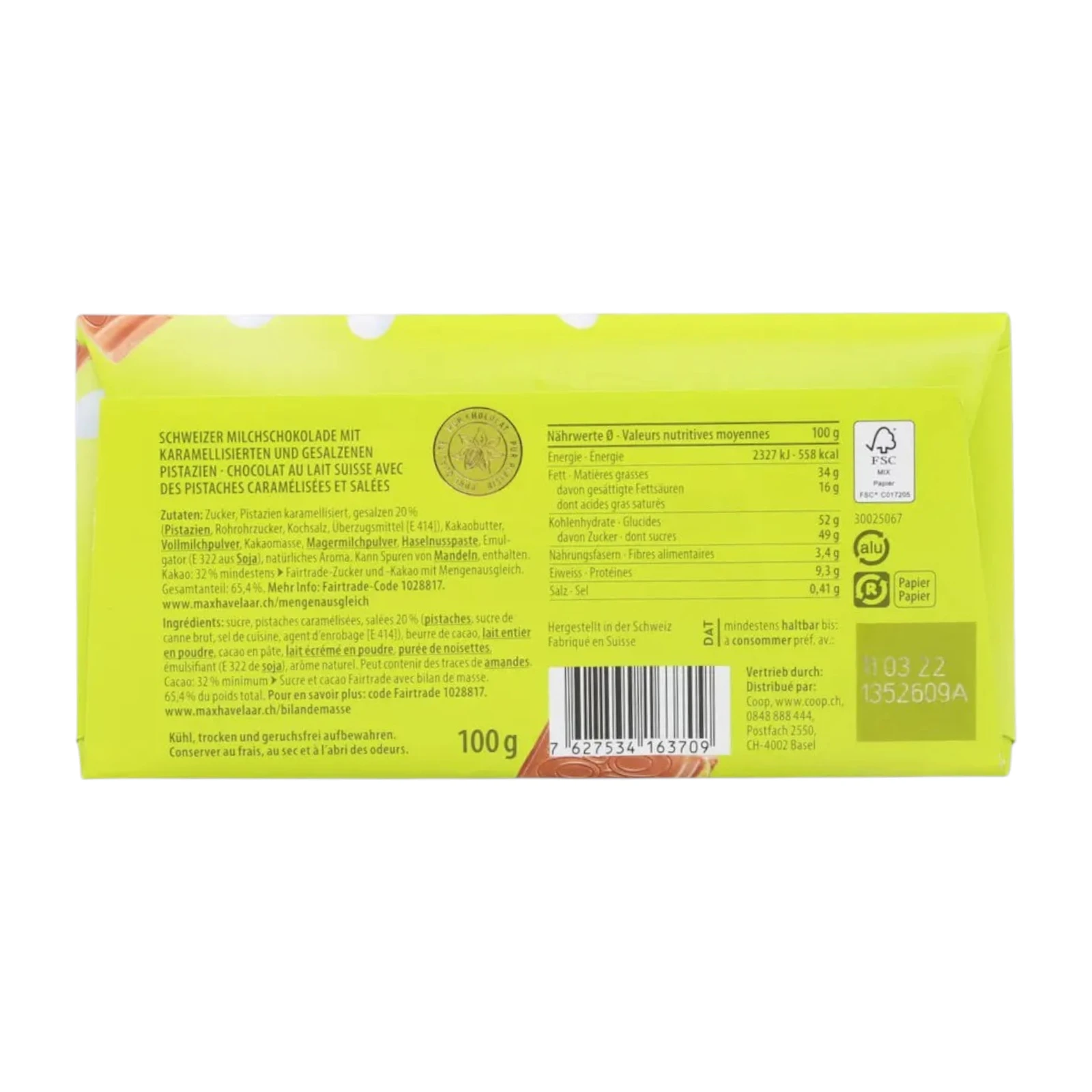 Halba pistachio is a Swiss milk chocolate bar combined with crunchy pistachio pieces. The milk chocolate is smooth and balanced, while the pistachios add a gentle crunch and a subtle nut flavour. It’s easy to enjoy without feeling heavy.
